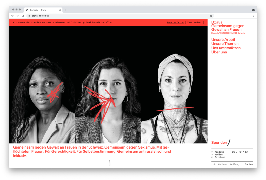 «TERRE DES FEMMES Schweiz tritt neu als Brava auf. «Brava» bedeutet auch «mutig» und «tapfer». Das positive und starke Brava soll für das Empowerment und die Selbstermächtigung von Frauen stehen – weit weg davon, Frauen als Opfer darzustellen.»