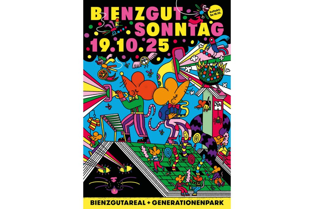 Für den Bienzgut Sonntag 2025 durften wir ebenfalls wieder den Flyer und das Plakat in verschiedenen Formaten gestalten.