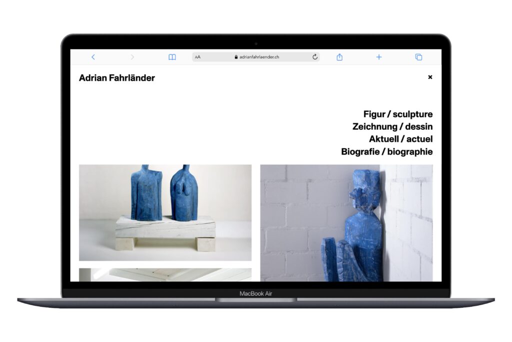 Die neue Webseite dient dem Künstler Adrian Fahrländer primär dazu, Einblick in seine Arbeiten zu geben. Ergänzend wird ein kurzer CV gezeigt. Und schlussendlich erhalten Interessierte eine Kontaktmöglichkeit.
