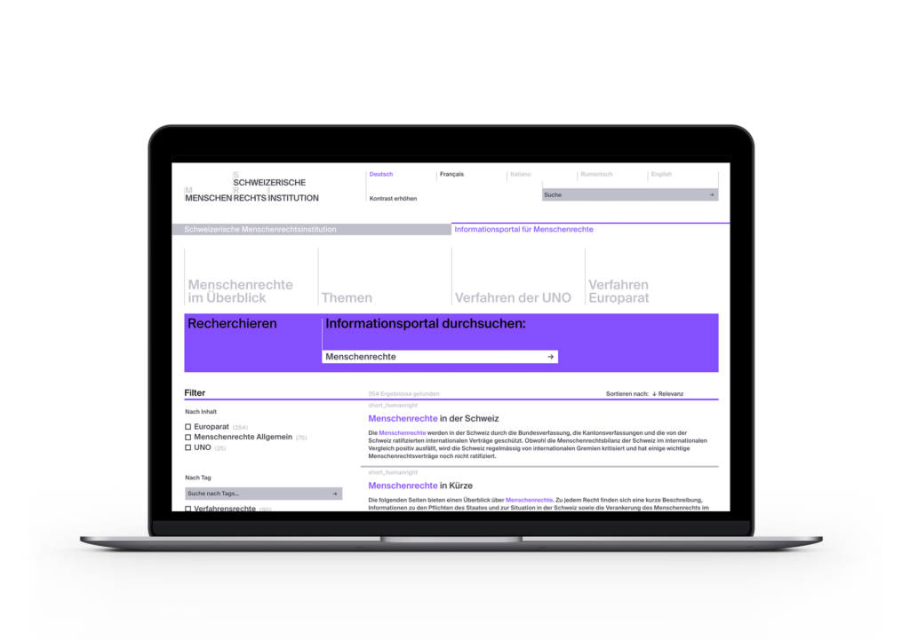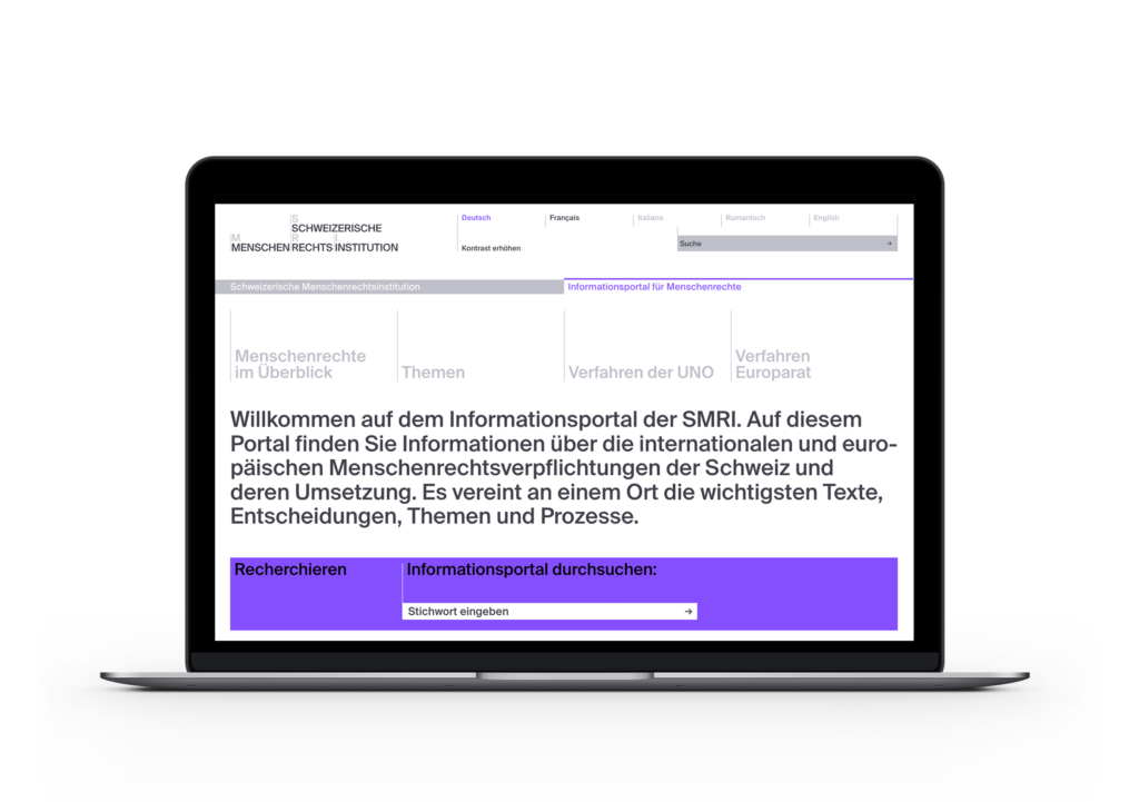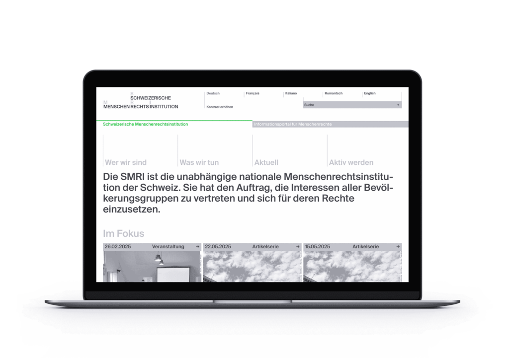 Die Website der Schweizerischen Menschenrechtsinstitution (SMRI) wurde von Captns technisch umgesetzt und basiert auf dem CMS Statamic. Ziel war es, eine moderne, mehrsprachige und barrierefreie Plattform zu schaffen, die das neue visuelle Erscheinungsbild der Institution widerspiegelt und gleichzeitig ein umfangreiches Informationsportal integriert. Die Website der Schweizerischen Menschenrechtsinstitution ist damit ein Beispiel für die Kombination von Design, Funktionalität und Barrierefreiheit.