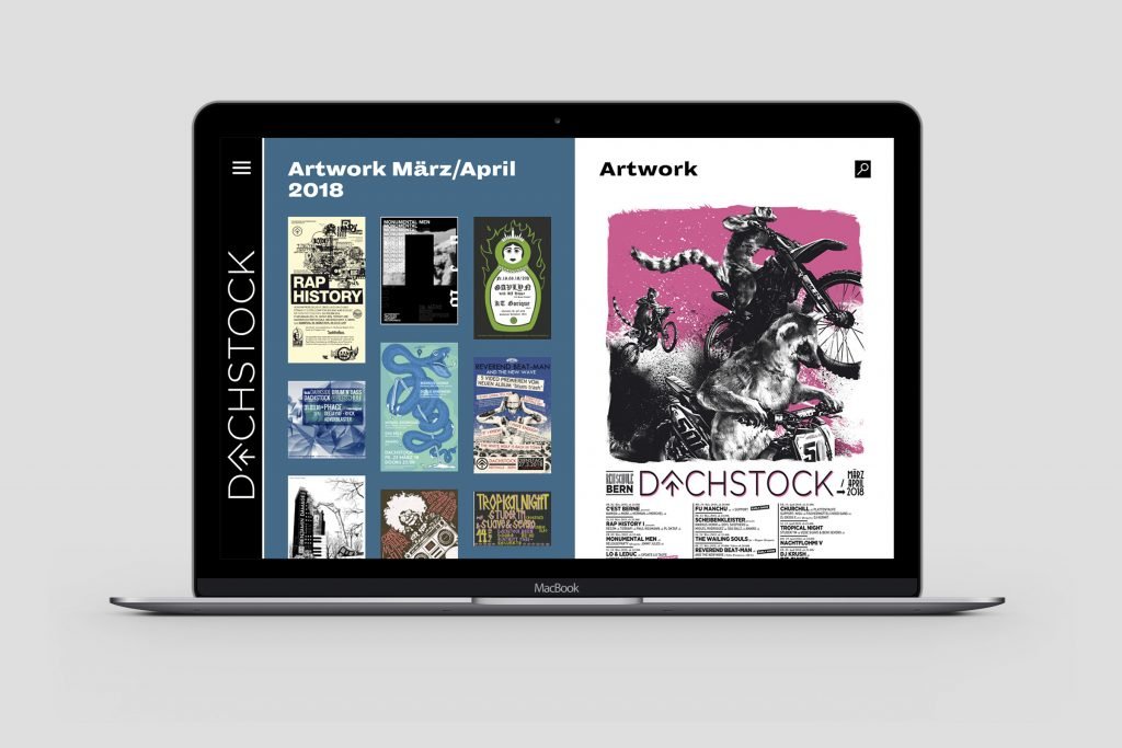 Die Webseite vom Dachstock Club Bern ist darauf ausgerichtet, das Programm möglichst übersichtlich zu präsentieren. Die Startseite vermittelt bequem das aktuelle Programm des Clubs. Das Archiv versammelt alle vergangenen Acts sowie alte Programm-Plakate.