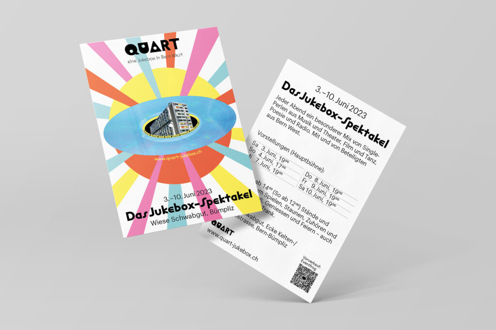 Wir haben den visuellen Auftritt von Quart gestaltet, dazu gehört auch das Plakat für die grosse Schlussveranstaltung, das gerade in ganz Bern auffällt.
